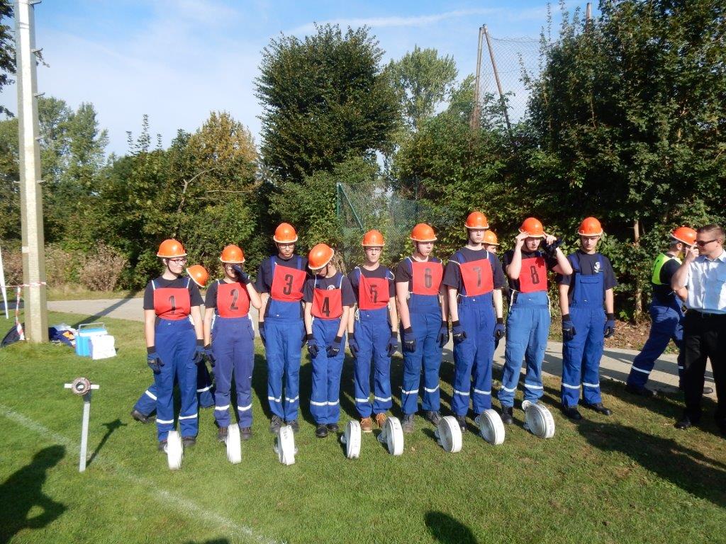 Insgesamt waren 27 Gruppen mit insgesamt 203 Bewerberinnen und Bewerbern (156 jungen und 47 Mädchen der Jahrgänge 1998 bis 2001) unterstützt durch sog. Füller in den Gruppen am Start. Darunter war auch eine Gruppe mit Teilnehmer aus Sachsen-Anhalt. Es näherte sich also für viele Jugendfeuerwehrmitglieder die wochenlangen Vorbereitungsphase dem Ende, nun endlich konnte man sein Wissen und Können in den Bereichen Feuerwehrtechnik, Sport und Politik beweisen.
